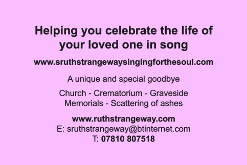 I provide an empathetic, considerate and caring service. My foremost wish is to sing that special, treasured song which will celebrate the life of your loved one and create a unique and special goodbye. I sing from the heart, my voice a gift to you and to them on this most important of days.