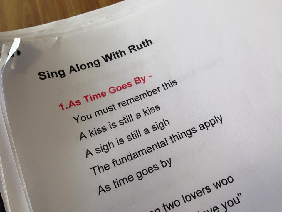We started the afternoon with a Sing Along session. Everyone was in good voice singing along to “As Time Goes By” from the 1942 film “Casablanca”. Residents at the home sing several times a week and really enjoy their music, which is quite evident.